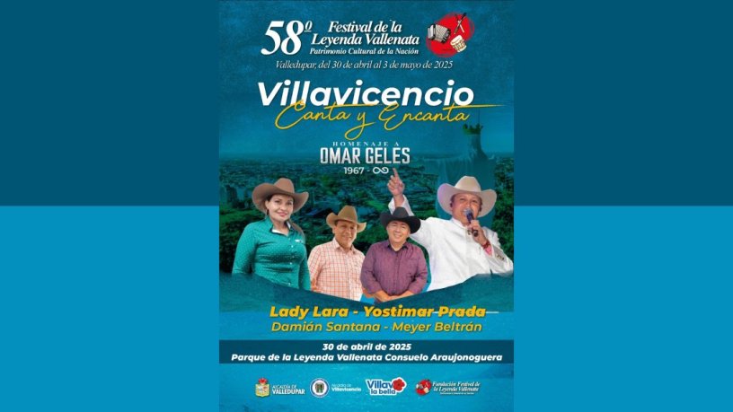 La ciudad de Villavicencio, conocida como ‘La puerta del llano’, se caracteriza por ser el destino turístico más destacado de los Llanos Orientales, se complace en contestar presente en la inauguración del 58° Festival de la Leyenda Vallenata en homenaje al Rey Vallenato Omar Geles que se llevará a cabo el miércoles 30 de abril de 2025 a partir de las 7:00 de la noche.
