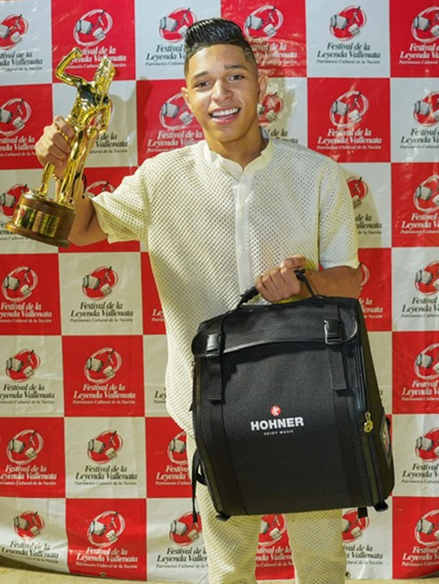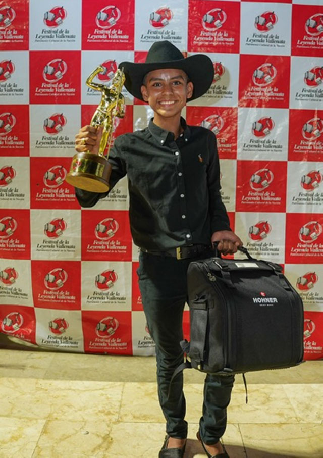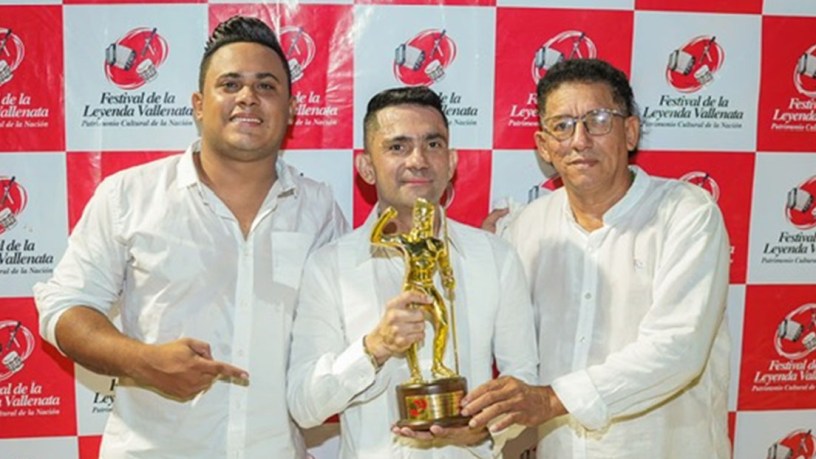El Rey Vallenato Iván Zuleta con su guacharaquero Jaider Daza Bolaño y el cajero Widinson Arias Martínez, quienes fueron premiados como los mejores