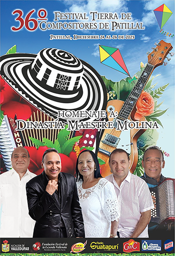 Con los concursos de canción vallenata inédita, acordeón juvenil, piqueria juvenil (14 a 17 años), pintura y cometas, del 24 al 26 de diciembre de 2025 se llevará a cabo en el corregimiento de Patillal, municipio de Valledupar, el 36° Festival Tierra de Compositores en homenaje a la dinastía Maestre Molina, la cual integran Gustavo, Raúl, José Alfonso y Rodolfo, unidos a su progenitora Elsa Molina Hinojosa.